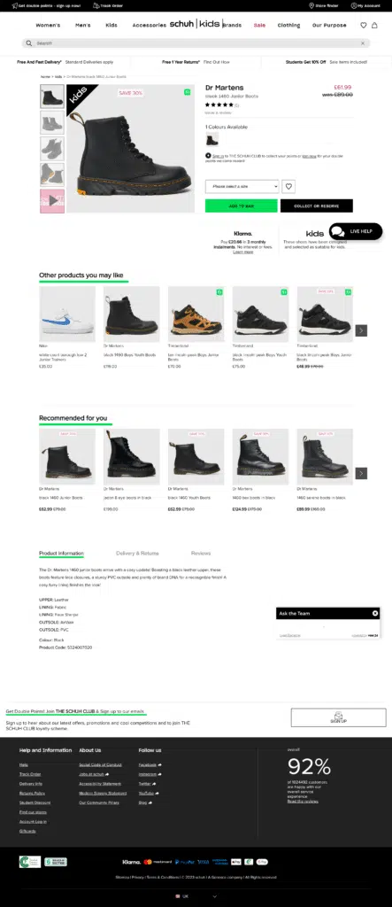 Include reassuring language around returns, delivery and getting in touch – and keep these visible during the checkout process so users don’t get the heebie-jeebies last minute and bail on their purchase to check out your fine print.