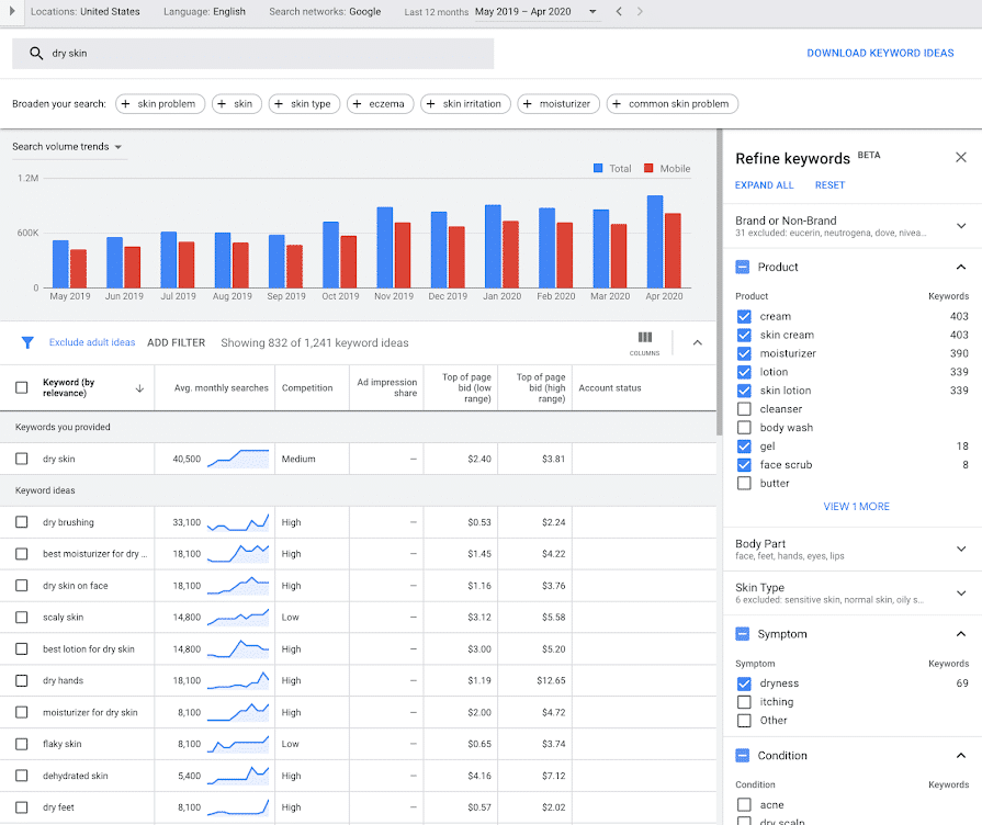 Refine keywords with Google’s keyword tool