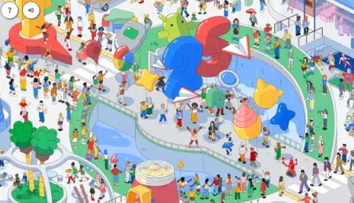 The game is pretty simple. There are 25 objects that you need to locate in the *crazy* picture. I guess you could just start clicking wildly on the picture and get lucky, but I would suggest looking at the list of objects that you need to find in the left hand side of the screen. To make it (very slightly) easier, you can see a clue for each object. To be honest, I am not really sure how much the clues really help, as the main picture is ridiculously busy.