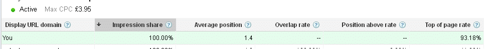 Whilst this report is very useful to see the display URLs of the websites that your ads are up against and data about how often your ads appear compared to them, it does not reveal which keywords your competitors are bidding on or information about their CPC bids, quality score or CTR.