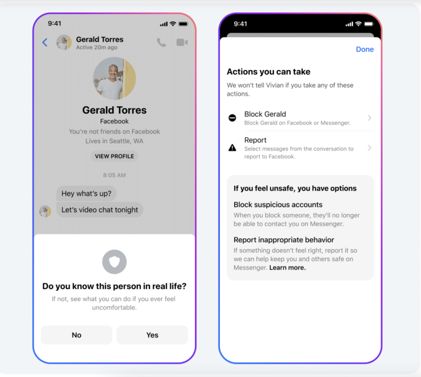 Meta says, “we’re prompting teens to report accounts to us after they block someone, and sending them safety notices with information on how to navigate inappropriate messages from adults. In just one month in 2021, more than 100 million people saw safety notices on Messenger. We’ve also made it easier for people to find our reporting tools and, as a result, we saw more than a 70% increase in reports sent to us by minors in Q1 2022 versus the previous quarter on Messenger and Instagram DMs.”