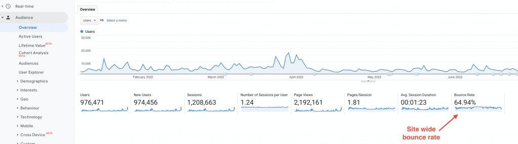 Previously on this blog, we’ve written about bounce rates – when to be worried and when not. We covered bounce rate as a whole (as above) by industry, channel, and device and showed that bounce rates will also differ depending on the type of site as a whole and on the different pages within it: