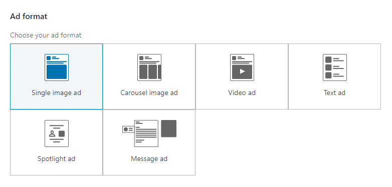 - Choose your ad format (note that different ad formats will be available based on the objective you select)