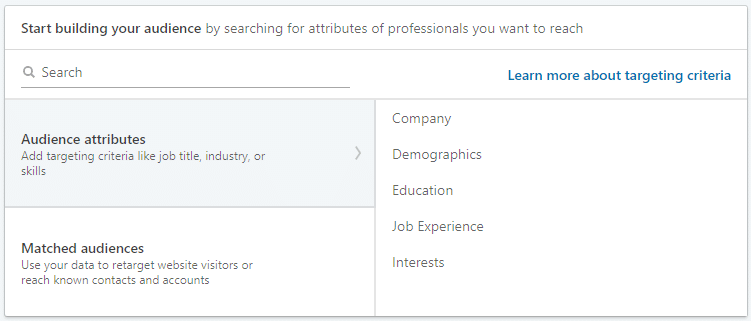 - Select the attributes of your target demographic, adding more attributes to narrow down the audience size