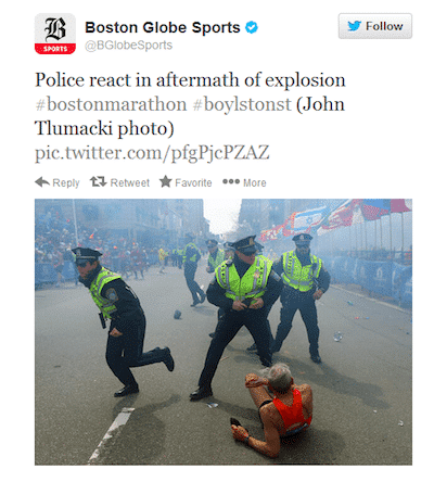 - #BostonMarathon and #BostonStrong After the Boston Marathon bombings in April there were more than 27 million tweets posted about the tragedy, including the initial news being broken from The Boston Globe.