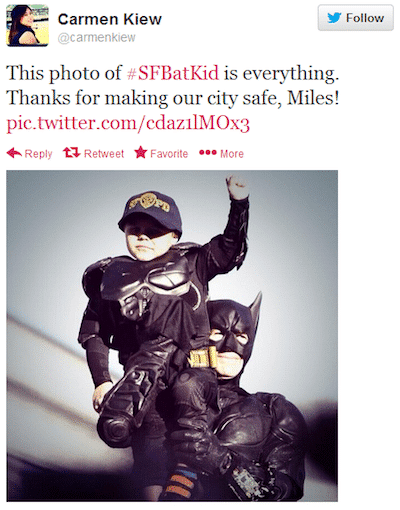 - #SFBatkid One of the most heartwarming stories that hit twitter this year was that of San Francisco and 5-year-old leukemia survivor Miles Scott. The Make-A-Wish Foundation turned San Francisco into Gotham City for a day, just as Miles had asked.