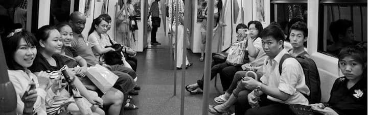 Thai photographer Benz Thanachart put the theory to the test. In his words, “I got into the subway, shouted out a random word that is completely unrelated to the situation and then captured that moment. It was the moment when everyone was getting out of their small worlds and noticing the presence of public space.”
