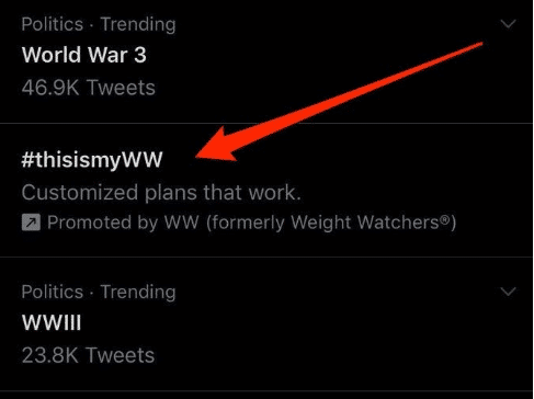 After a series of events that took place earlier in the year, (which I won’t get into as I don’t want to try to explain the ins and outs of what is currently the complex geopolitical landscape), a number of different ‘World War 3’ topics were trending on Twitter. Not the ideal start to a new decade! While this is not a great sign for the wider public it also came at the worst time for Weight Watchers who launched its new campaign #ThisIsMyWW at exactly the same time.
