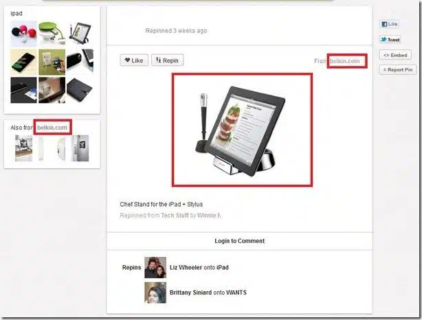 Take the following screen grab of a ‘pinned’ Belkin Chef Stand as an example: