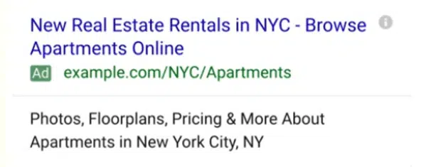 It’s not long now until advertisers will no longer be able to create or edit old Google text ads, in the old 25-35-35 formation, as all new ads created after 31st January will have to be in the new expanded format, 30-30-80. Here’s an example of what the new expanded ads look like: