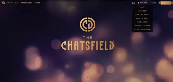 Mixing ‘reality with fantasy’, The Chatsfield houses more than 800 pieces of content which the visitor has to explore in order to find. On the home screen you are given the option of having a drink with Daniel the bartender, visiting a bedroom that Ally the chambermaid is cleaning, partying in the presidential suite with playboy Adam, or exploring the reception with Jessie the executive assistant.