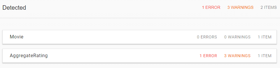 However, when you run the IMDb home page through the test, there is no Schema markup at all. Presumably because they know people will search for the movie in a search engine, as opposed to searching for IMDb and then searching for the film.